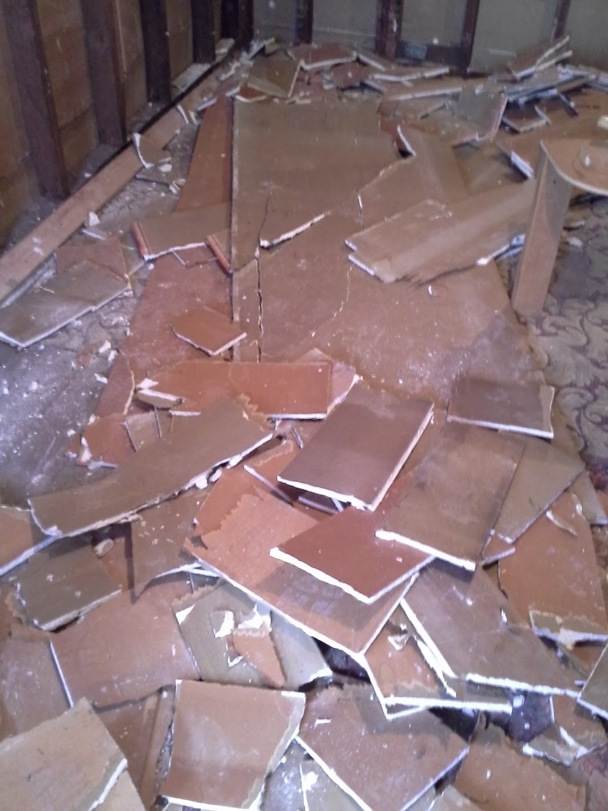 Shayle & Susie had had to leave a little earlier, so it was four of us for the afternoon -- Robin & AJ went back to the yard, & Amanda & I set about breaking up the false flooring: